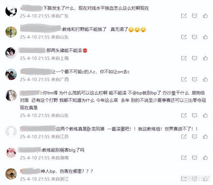 赛后BLG官博炸了,不少粉丝怒喷教练:不会BP就别BP,为什么ban沙皇,为什么放纳亚菲利?这种BP有伤害吗?两个教练卧龙凤雏,能不能一起滚?有这种教练组今年进不了世界赛!也有粉丝批评wei,要求换打野,还有粉丝质疑BLG下路的状态,表示他们对线水平下滑了不少。